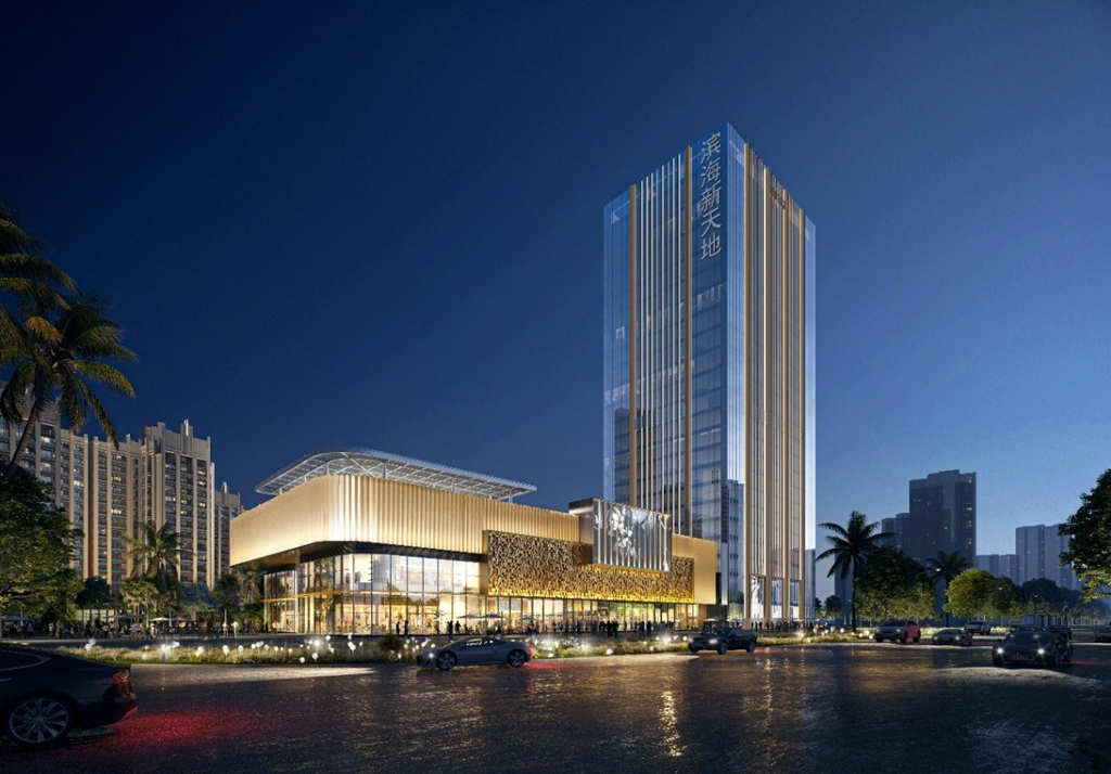 中國電建大灣區科創中心基地位于廣東省廣州市花都區,是由中電建(廣州)城市投資發展有限公司投資開發建設。該項目幕墻形式主要包括玻璃幕墻、鋁板幕墻等,總建筑面積約為62000平方米,幕墻面積38000平方米,建筑高度為162 1米。該項目是一棟超高層辦公樓,建成后將打造成為具備總部基地的地標性建筑。??跒I海新天地商業綜合體 位于海南省??谑?,是由
